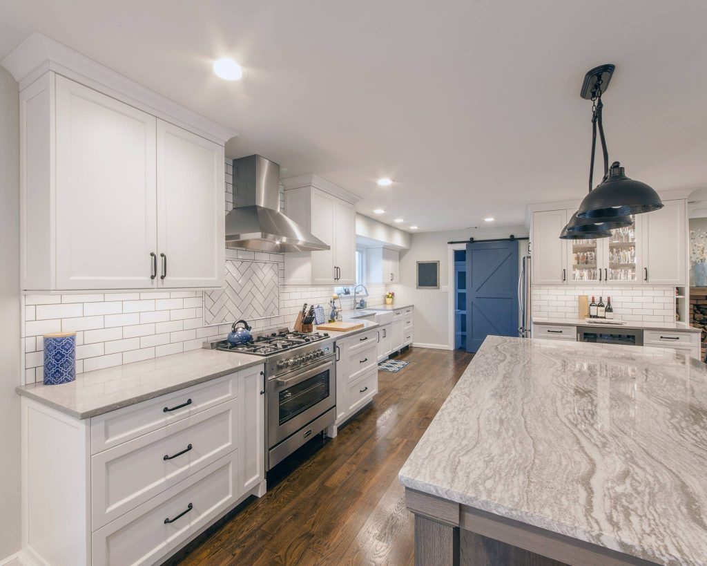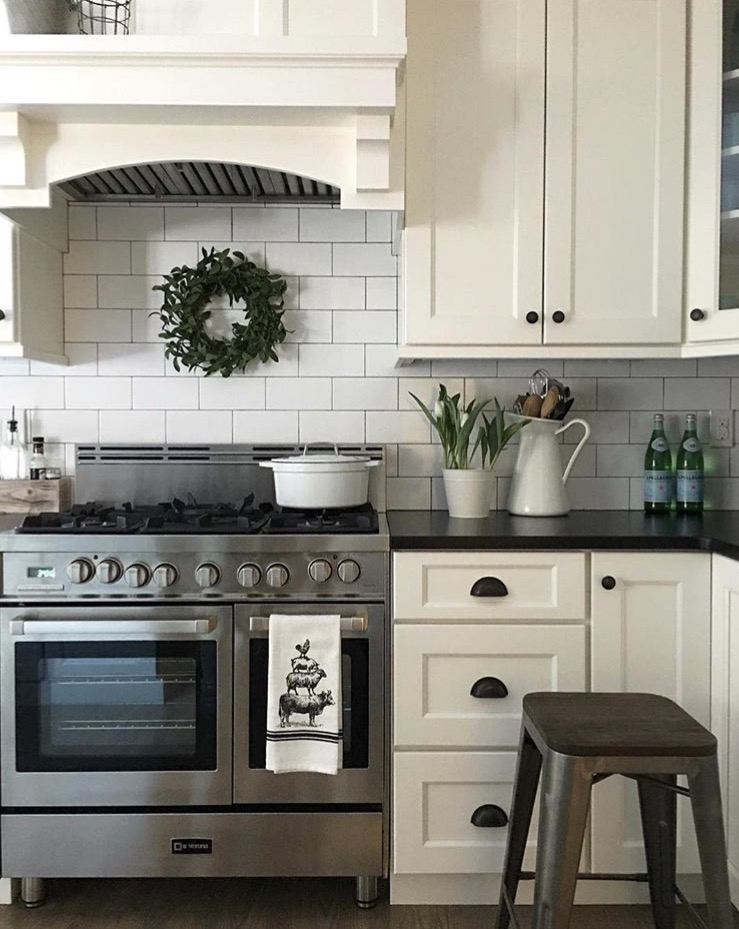 Light and airy walls and cabinets are often times the staple feature of a modern farmhouse kitchen. The abundance of white makes the space appear larger, and the neutral palette allows for greater freedom when adding accents such as cabinet hardware, textiles and accessories.