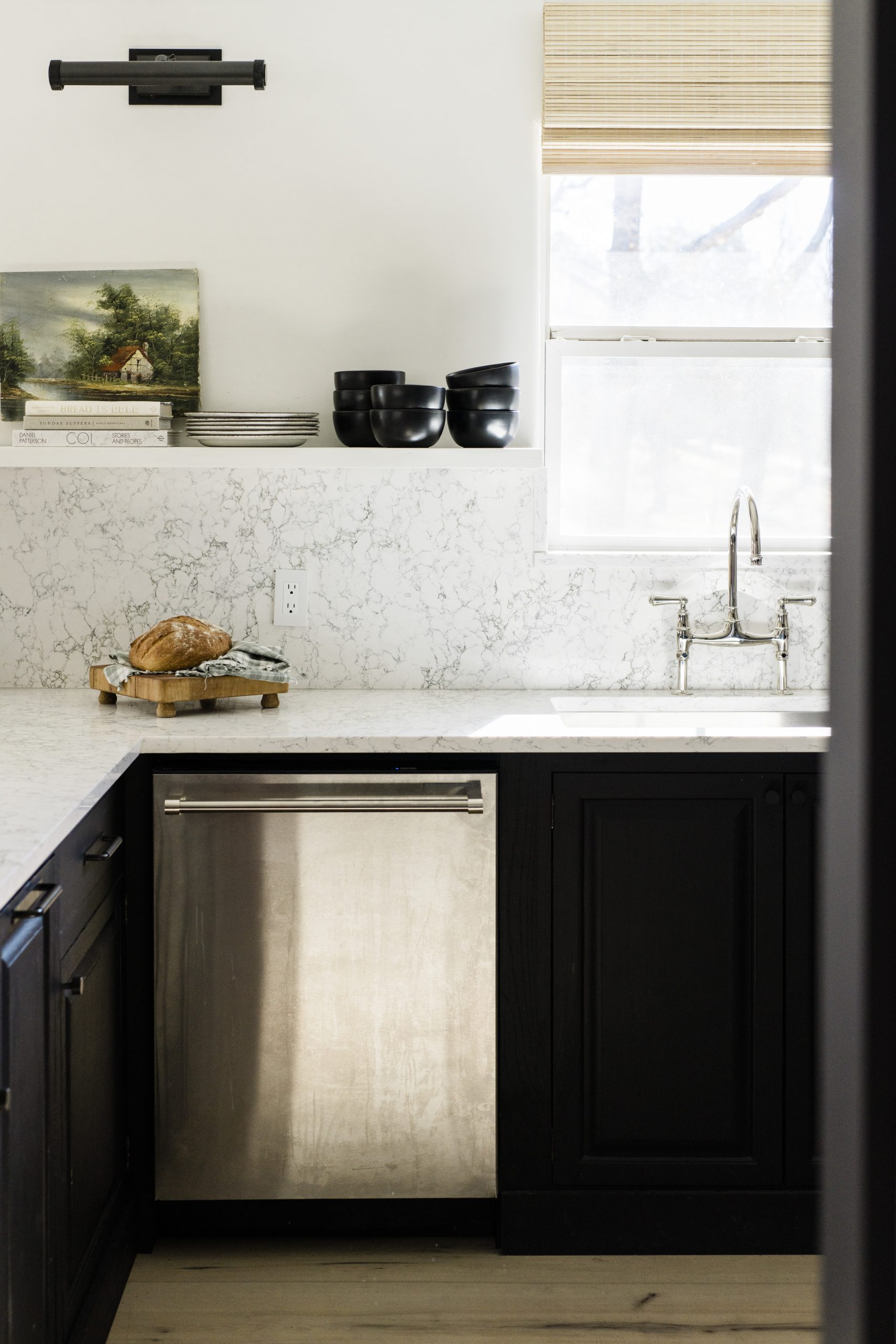 Anastasia knew that Verona Appliances had a reputation for quality, but the matte black finish is what sealed the deal. “Finding a beautiful electric range was priority number one,” she says. “I wasn’t willing to compromise aesthetics, so after days and days of research, I was ecstatic to find this matte black option from Verona.” For Anastasia, the 36” Designer Electric Range in Matte Black reminded her of the cooking appliance she had at her primary residence. Even better, it perfectly matched the paint color (Tricorn Black SW 6258 by Sherwin-Williams) on her cabinetry for a seamless, moody look – which is something nicely unexpected in a lake house!